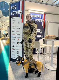 Démonstrateur du GT : mannequin EDDY, habillé / protégé / armé de la tête aux pieds ainsi que son chien.